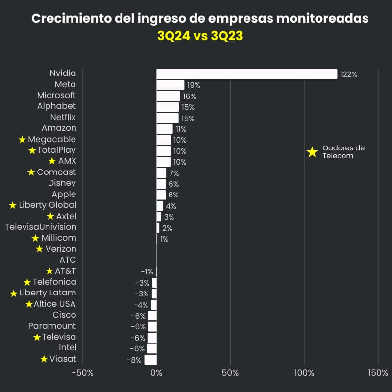Mientras las grandes tecnológicas (Meta, Alphabet, Microsoft) capitalizan modelos de negocio multiplataforma y escalables, los operadores de telecom tienen ingresos concentrados en la conectividad básica (banda ancha y servicios móviles), que se ha convertido en un commodity con márgenes ajustados.