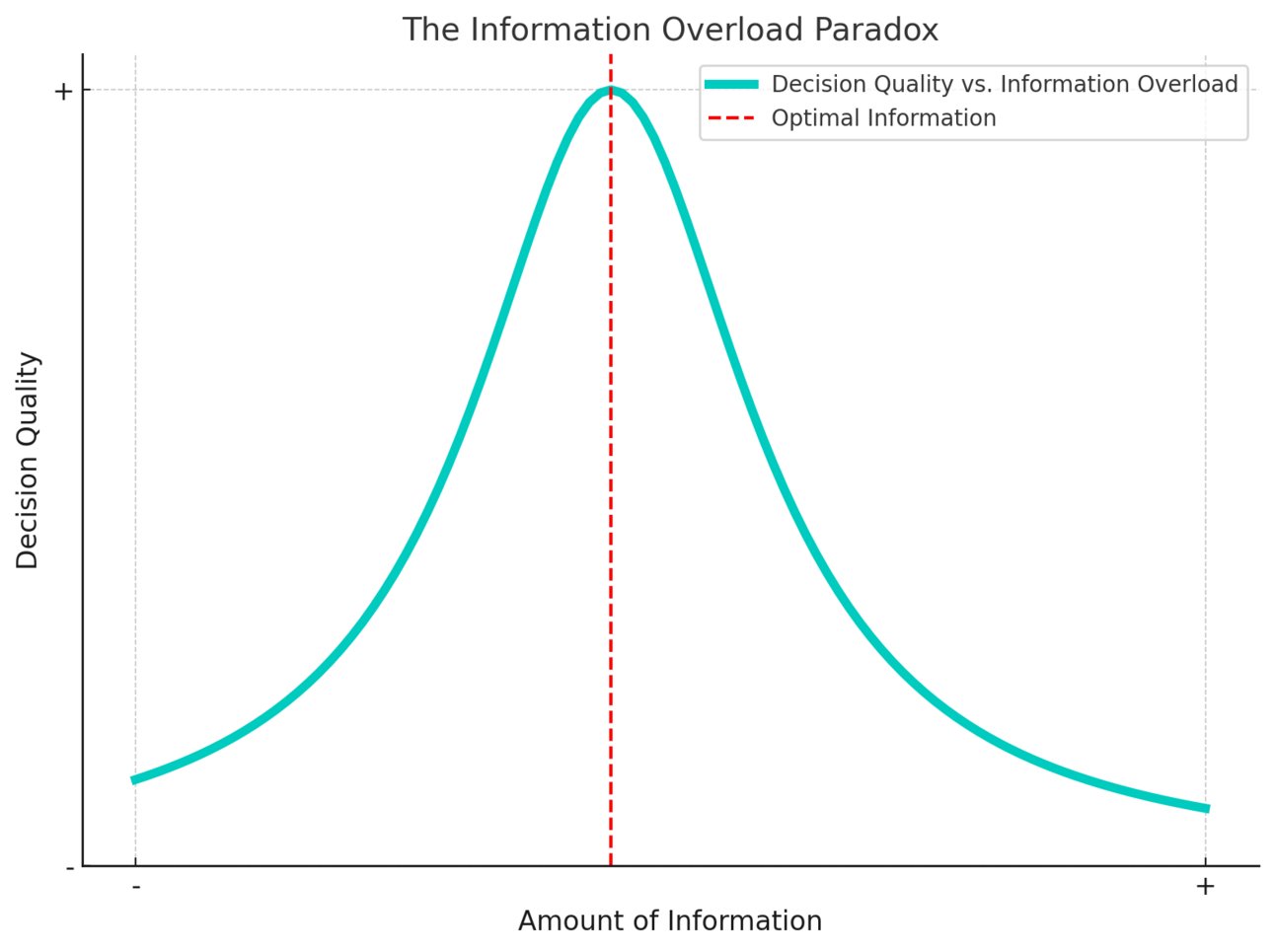 El exceso de datos no siempre es sinónimo de mejores decisiones. El concepto de The Information Overload Paradox sugiere que hay un punto óptimo en el cual los datos maximizan la calidad del anÔlisis, pero mÔs allÔ de esa frontera, la abundancia desorienta y afecta la claridad.